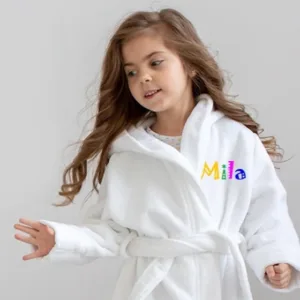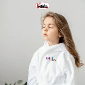 We always think of your loved ones too! A white model of a bathrobe, available in three sizes: 4, 8 and 12 years, with the possibility of embroidery! Now your child will have a new, modern and personalized bathrobe, made of 100% cotton terry.