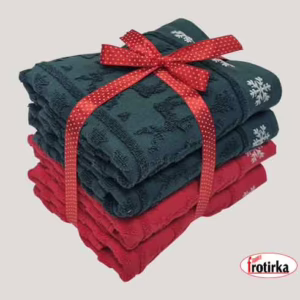 Пешкирот Frosty е совршен избор за создавање на совршена магична атмосфера во вашата бања во текот на празниците. Изработен од висококвалитетен памук, овој пешкир е мек, апсорбирачки и издржлив, што го прави идеален за секојдневна употреба во бањата. Достапен е во две бои: зелена и црвена, кои се совпаѓаат во секој ентериер.